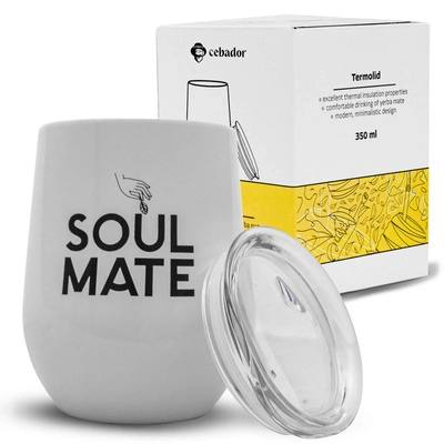 TermoLid – hőszigetelt yerba mate bögre fedéllel – Soul Mate (fehér) – 350 ml