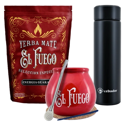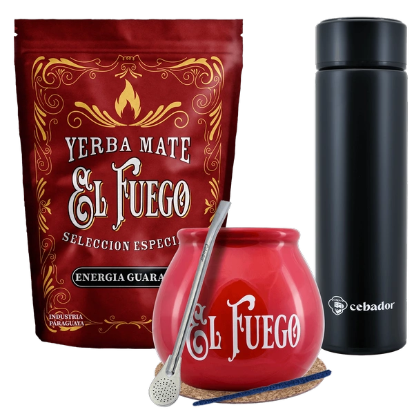 Yerba Mate készlet: El Fuego 500g + Thermosz LED + Mate Tök + Bombilla