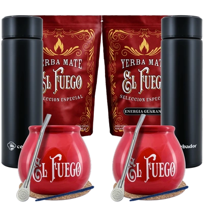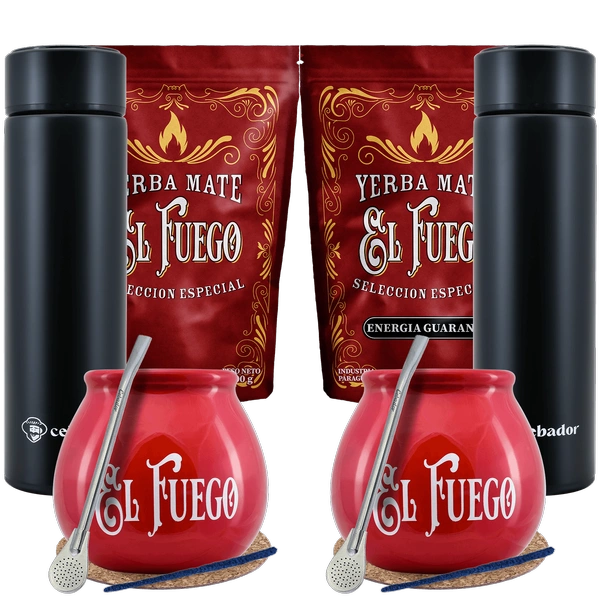 Yerba Mate szett két főre: El Fuego 2x500g + 2x Thermosz LED + 2x Mate Tök + 2x Bombilla