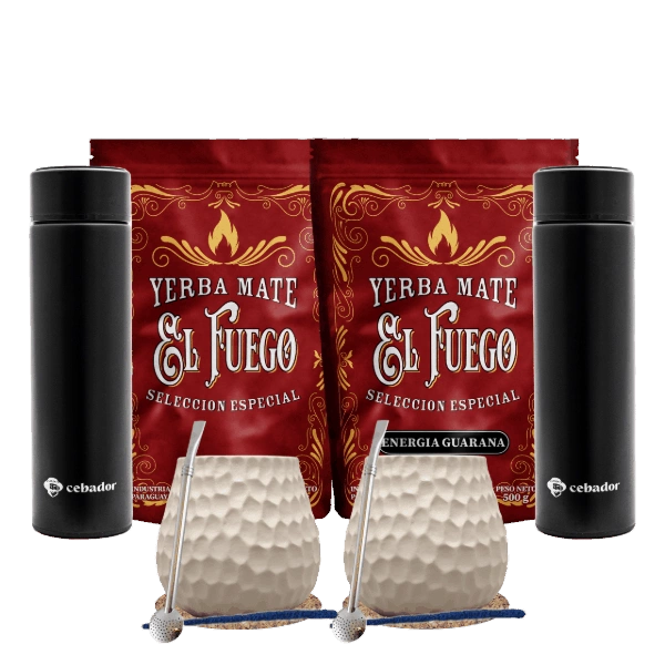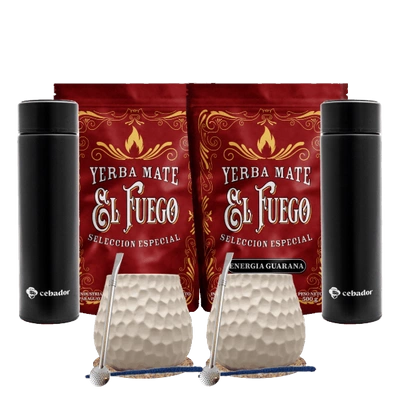 Yerba Mate szett két főre: El Fuego 2x500g + 2x Thermosz LED + 2x Mate Tök + 2x Bombilla