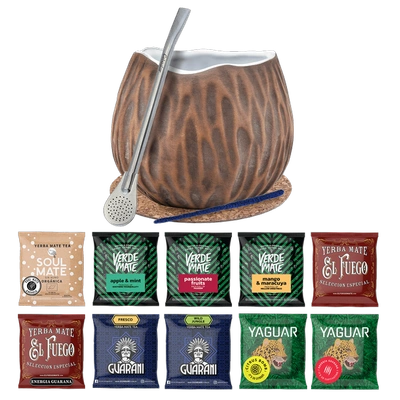 Yerba Mate készlet 10x50g Calabash kókuszos Bombilla 500g