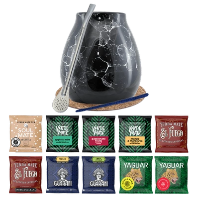 Yerba Mate készlet 10x50g Calabash Marmol Bombilla Bombilla