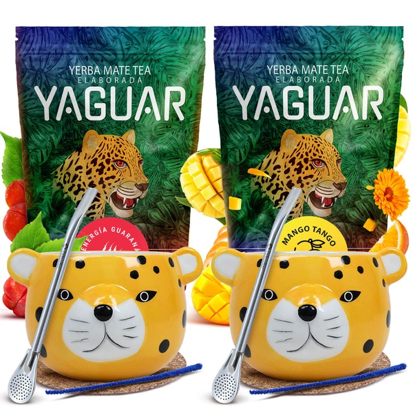 Yerba Mate készlet két személyre: Yaguar 2x500g + 2x Mate Tök + 2x Bombilla
