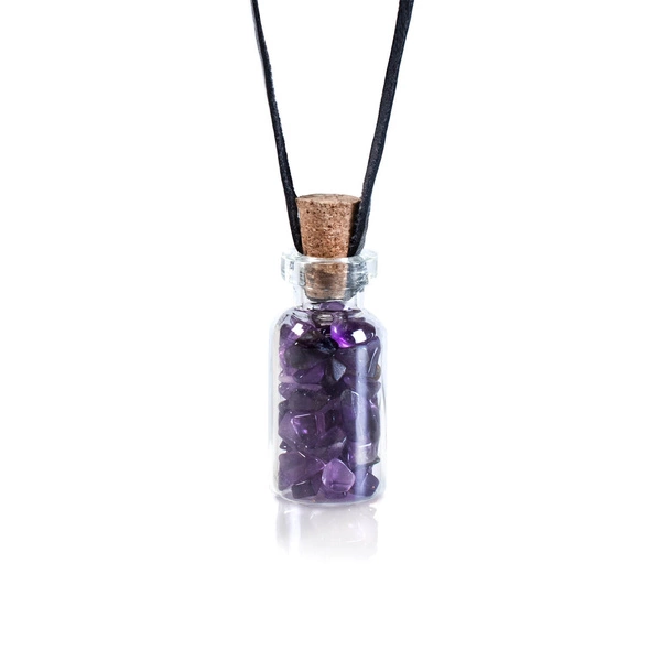 Ametisztes üveg - a természet esszenciája üvegbe zárva. Nemcsak feltűnő dekoráció, hanem erőteljes talizmán is, amely megvéd a negatív energiától. A zsinórnak köszönhetően mindig magadnál tarthatod, érezheted az általa hozott békét és harmóniát. A kristályokkal teli üveget bárhová felakaszthatja otthonában, például az ajtó vagy az ablak mellé, hogy pozitív energiát vigyen be a lakásba. Merüljön el a természetes kövek varázslatában, vagy ajándékozza meg szeretteit egy különleges ajándékkal!