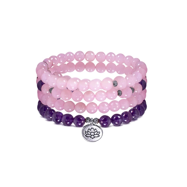 Ametiszt és rózsakvarc Mala karkötő – Lotus Flower