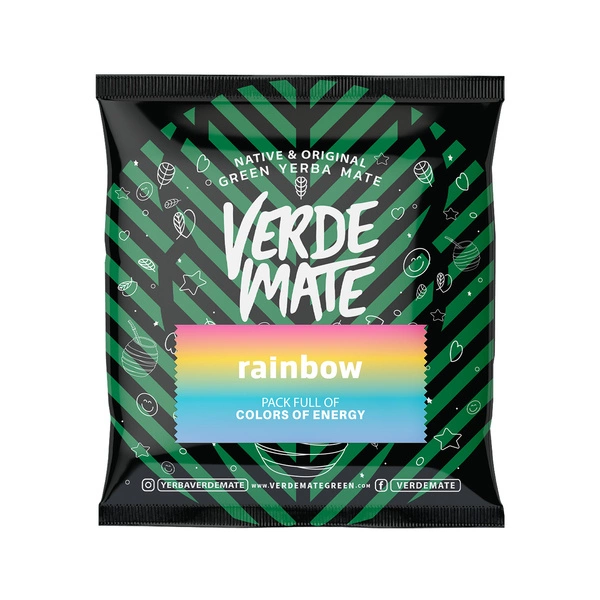 • A Verde Mate Green Rainbow a brazil yerba mate, málna, narancs, goji bogyó és jázmin energizáló keveréke. Az ízek teljes spektrumát, természetes koffeint és a növényi összetevők egyedülálló összetételét. Próbálja ki!