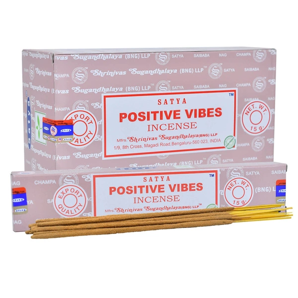 - Satya Positive Vibes füstölő - kézzel sodort indiai füstölőpálcika virágos-fás illattal. Nyugtatnak, tisztítanak és emelik a rezgéseket. Ideális meditációhoz, jógához és pozitív légkör megteremtéséhez otthon vagy a munkahelyen.