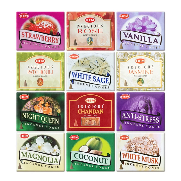 - HEM kúpos füstölőkészlet 12 aromás változatban. Tökéletes relaxációhoz, energiatisztításhoz és egyedi hangulat megteremtéséhez. Ideális az esti teához, yerba matéhoz vagy meditációhoz.