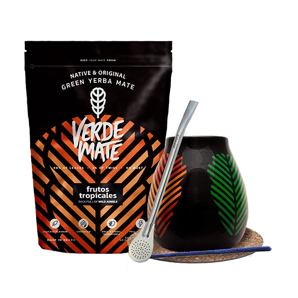 Yerba Mate készlet: Verde Mate Frutos Tropicales 500g + Mate Tök + Bombilla