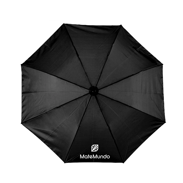 - Összecsukható fekete esernyő a MateMundo shop logójával.